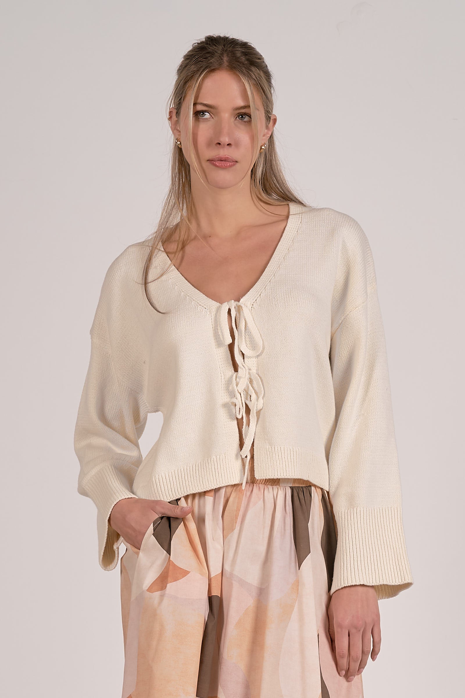 Feminine, flirty, and easy to style—the Simple Bow Tie Front Cardigan by Elan is a soft layering piece with standout charm. Designed with a deep V-neckline and front tie closure, it’s perfect over a cami, dress, or bralette.