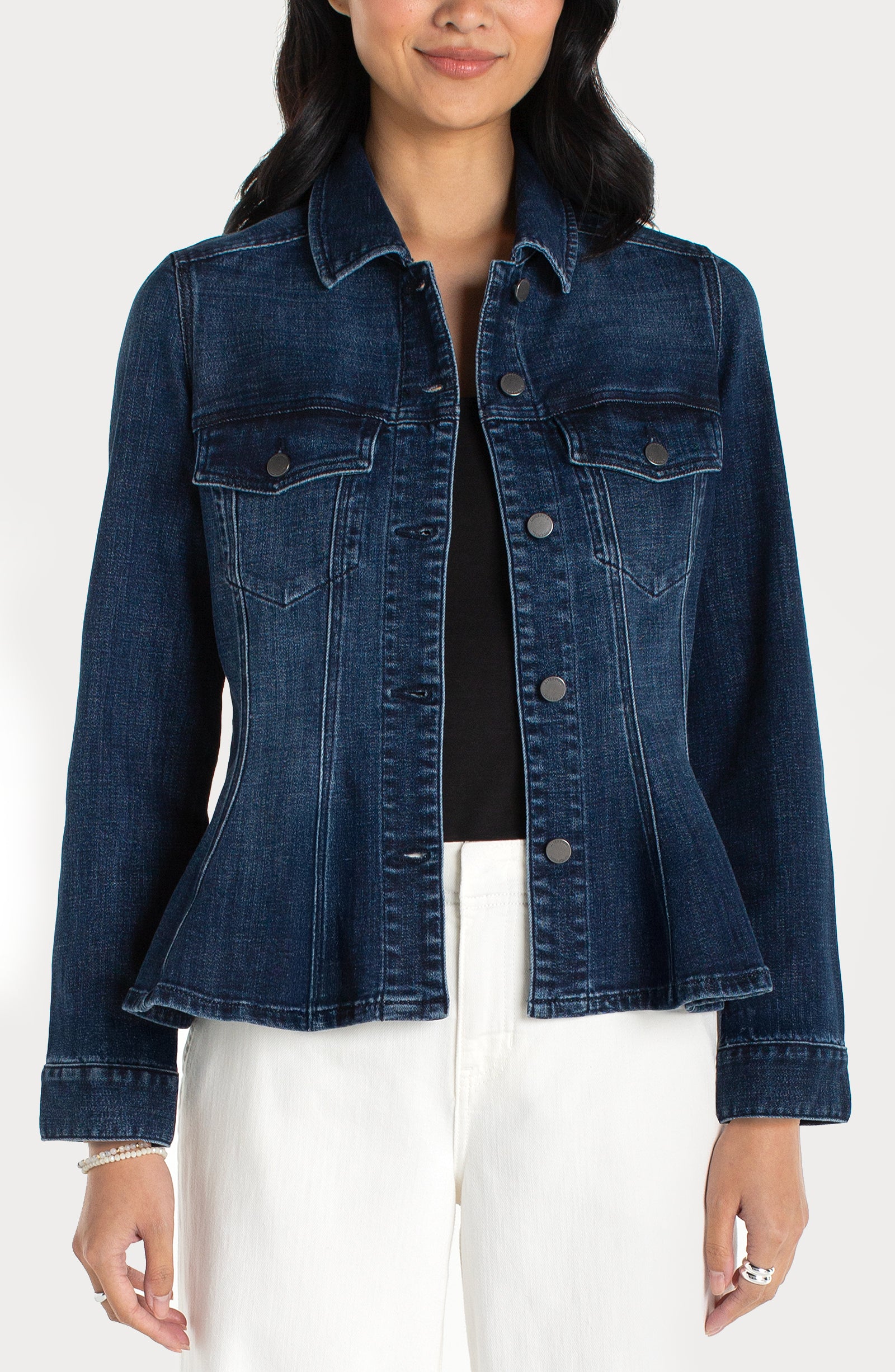 A flattering twist on a classic layer, this white denim jacket is designed to move with you while adding polish to any look.