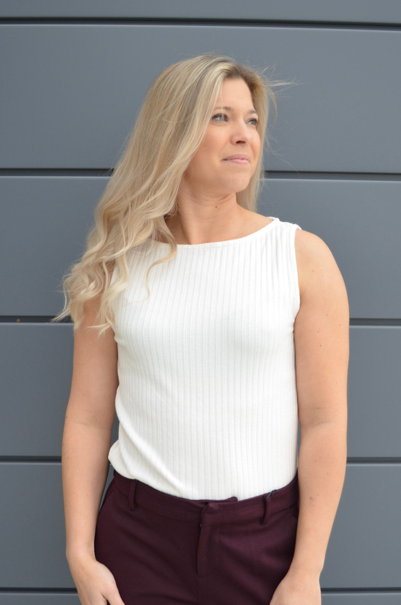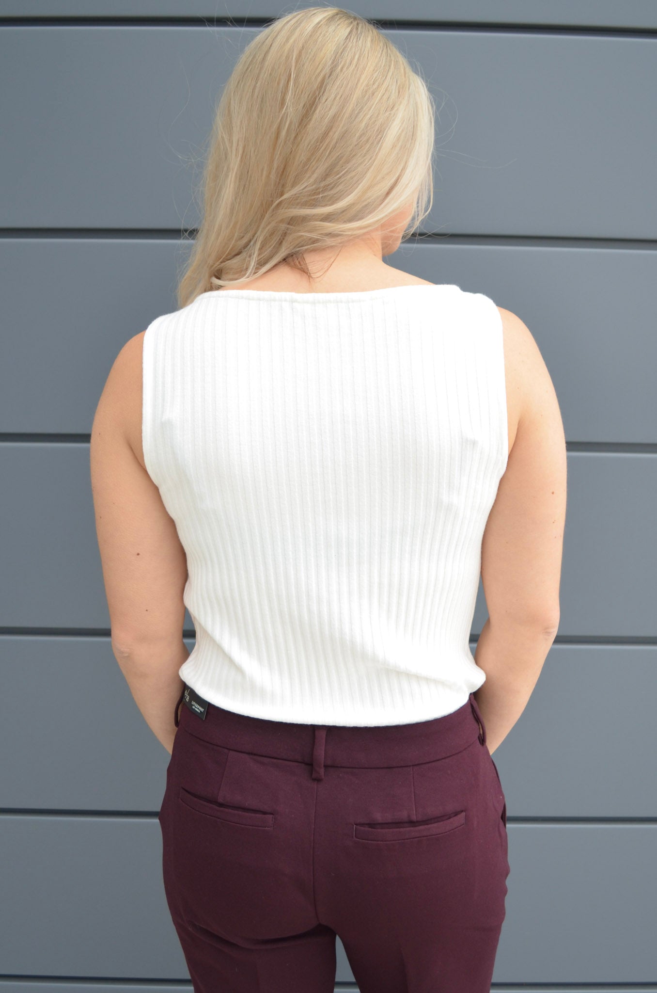 A refined essential for every wardrobe. This sleeveless rib knit top features a flattering boat neckline and soft, stretch-blend fabric that hugs in all the right places. Wear it on its own for a clean, sophisticated look or layer it under your favorite blazer or cardigan. Available in multiple colors to complement every season and style.