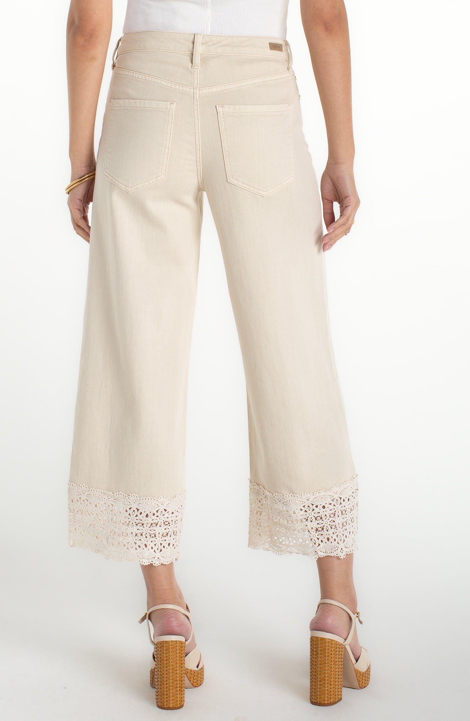 Feminine detail meets modern tailoring in the Stride Wide Leg by Liverpool. Designed with a flattering wide leg silhouette and delicate lace trim accents, this pair adds a soft, elevated touch to your everyday denim.